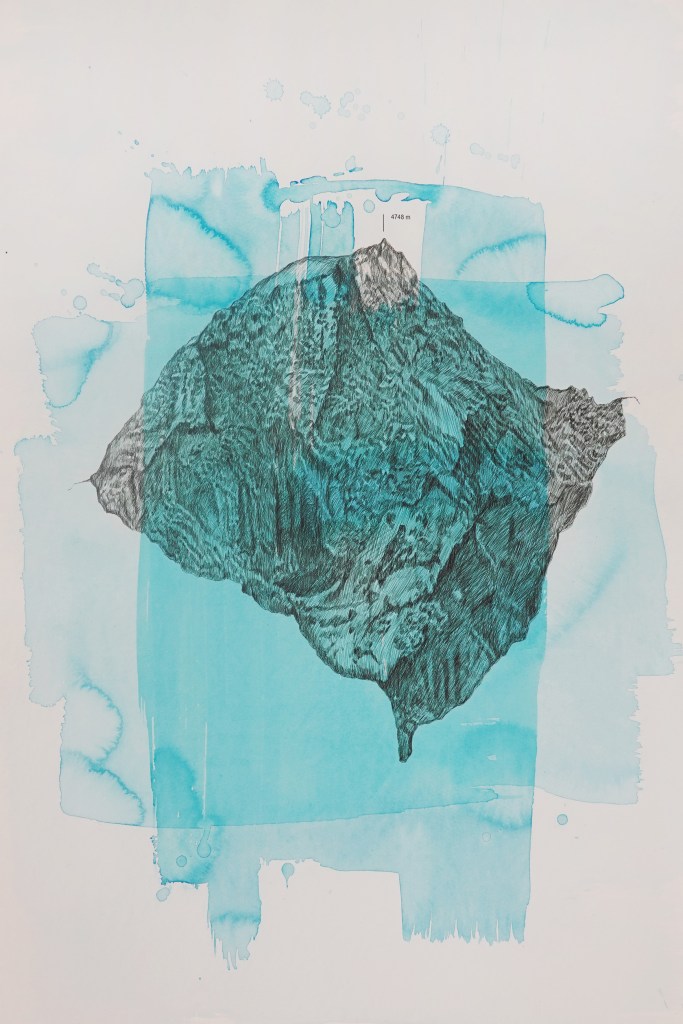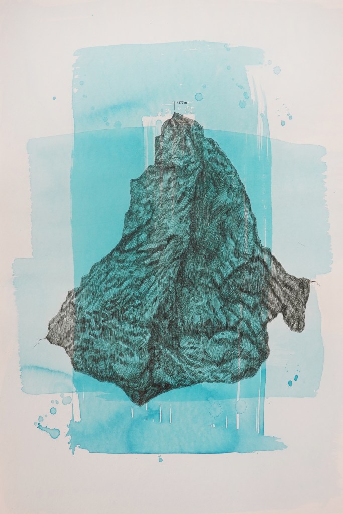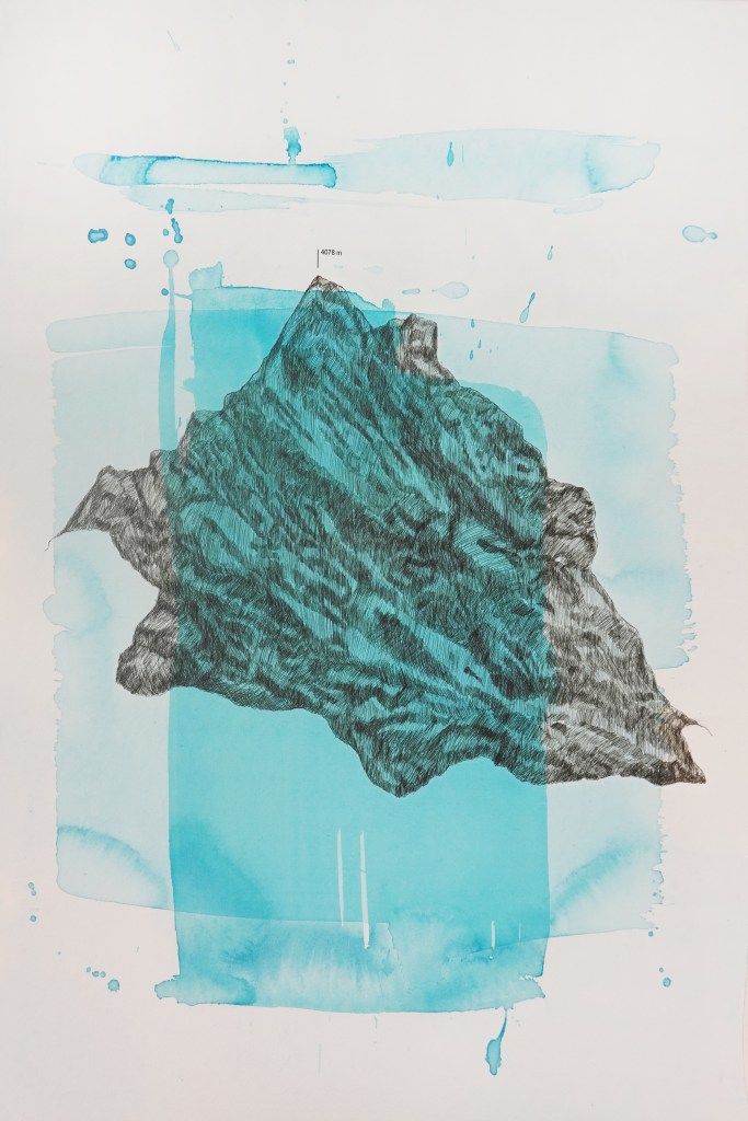 dark summits, 2023, serie, druck/tusche auf papier, 40 x 30 cm